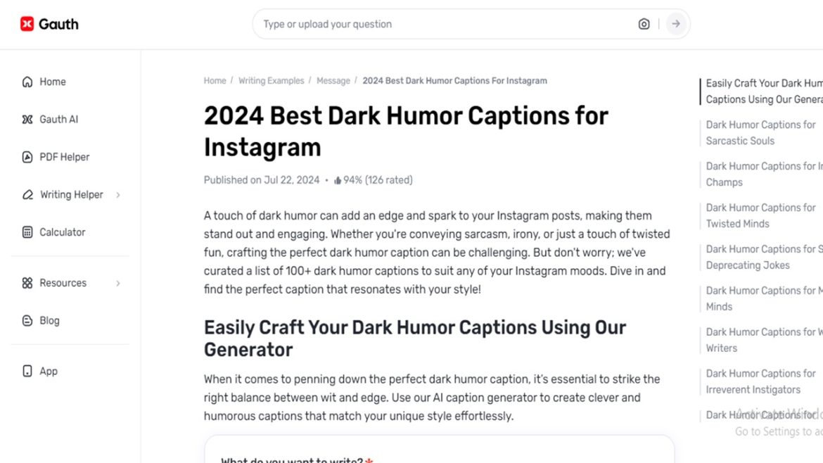 Instagram of course has become more than a platform that showcases merely selfies and decadent dishes, it is a place of content and personality. Utilizing Gauth, a highly developed artificial intelligence tool, it is possible to create truly powerful dark humor captions that at the same time do not offend anyone. This article will discuss how you can take the DIY approach out of creating dark humor instagram captions with the help of Gauth.