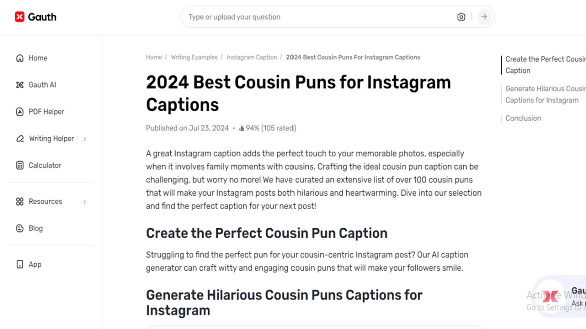 Gauth is transforming how we deal with Instagram captions especially when it comes to cousin birthdays. Using them, you will be able to generate unique, emotionally charged, and as engaging as possible captions to your posts and to celebrate your cousin. Gather the strengths of Gauth in enhancing the appearance of the posts on the Instagram feed and utilize them to provide the birthday post of your cousin more significance.